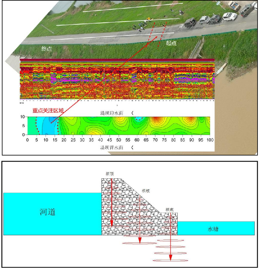 堤防内部隐患探测管涌探测、渗水点探测、治理后堤坝探测