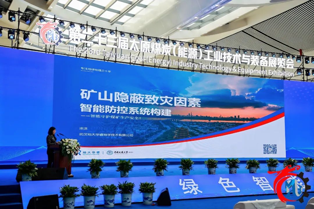 展会同期举办的煤炭绿色智能开采技术交流会,是行业内专家学者和企业代表交流思想、分享经验的重要环节。在 4月22日16:25 - 16:45 的时段,武汉地大华睿地学技术有限公司总经理凃洁女士带来了精彩的报告 ——《矿山隐蔽致灾因素智能防控系统》。