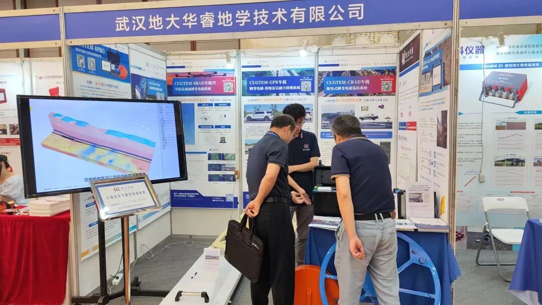地大华睿本次展示CUGTEM 系列瞬变电磁探测装备,包括:CUGTEM-19Rad、CUGTEM-8Pro等,吸引了众多地勘单位与矿山企业的驻足咨询。我司通过 “实物+视频” 的演示方式,直观呈现了产品在矿产勘查场景中的核心优势和施工现场。